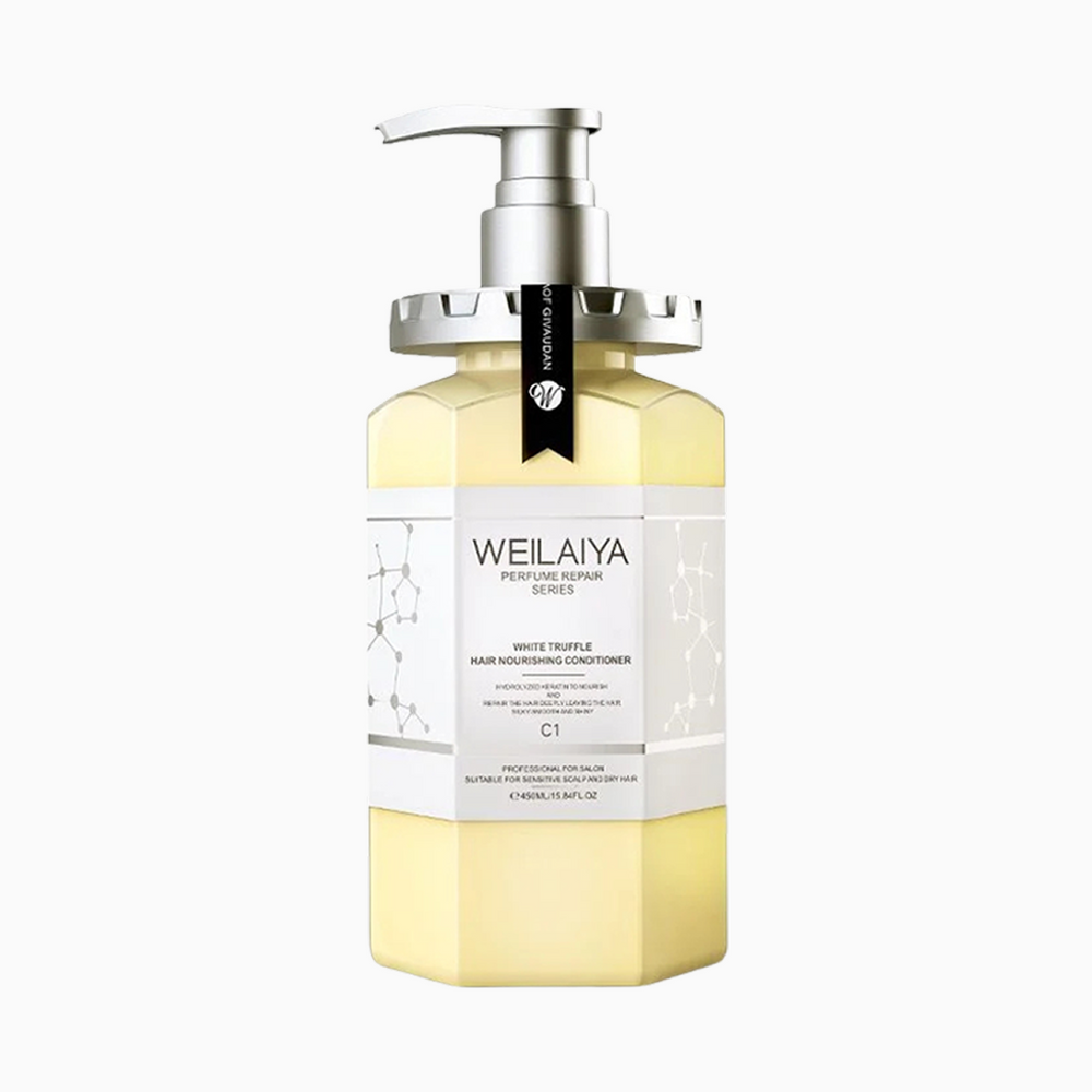 Dầu xả Weilaiya Truffle kết hợp chiết xuất nấm Truffle trắng, trứng cá tầm cùng keratin thủy phân và sericin kén tằm—bộ tứ dưỡng chất hỗ trợ phục hồi lớp biểu bì, làm mượt bề mặt sợi tóc và tăng độ đàn hồi cho mái tóc yếu, hư tổn.