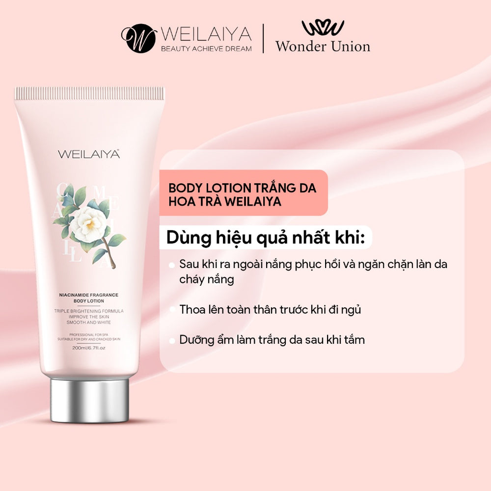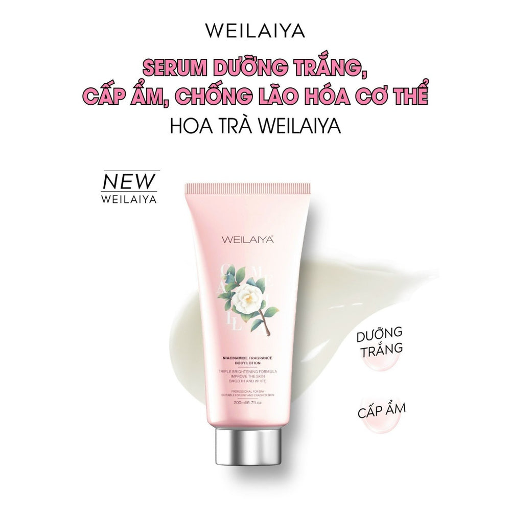 Lotion dưỡng thể Weilaiya Hoa trà kết hợp chiết xuất hoa trà tự nhiên, glycerin và vitamin E giúp phục hồi độ ẩm, làm mềm da và cải thiện độ đàn hồi.